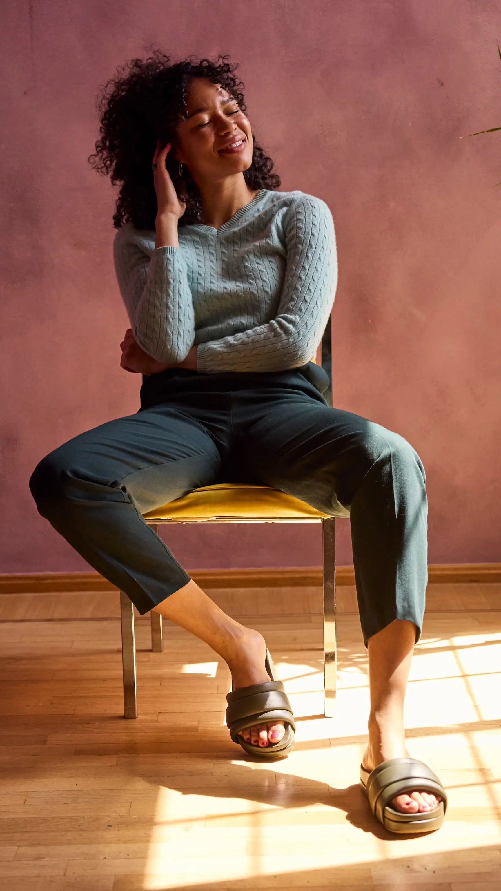 Feeling Good” to me looks like wearing my favorite comfy supportive shoes, making sure I eat my serving of veggies, flossing my teeth, feeling the sun on my skin, laughing loudly, or having an extra glass of water throughout the day. These small self-care practices really help me show up as the best version of myself possible. I’m kinder to others, more patient, relaxed, and more open minded.