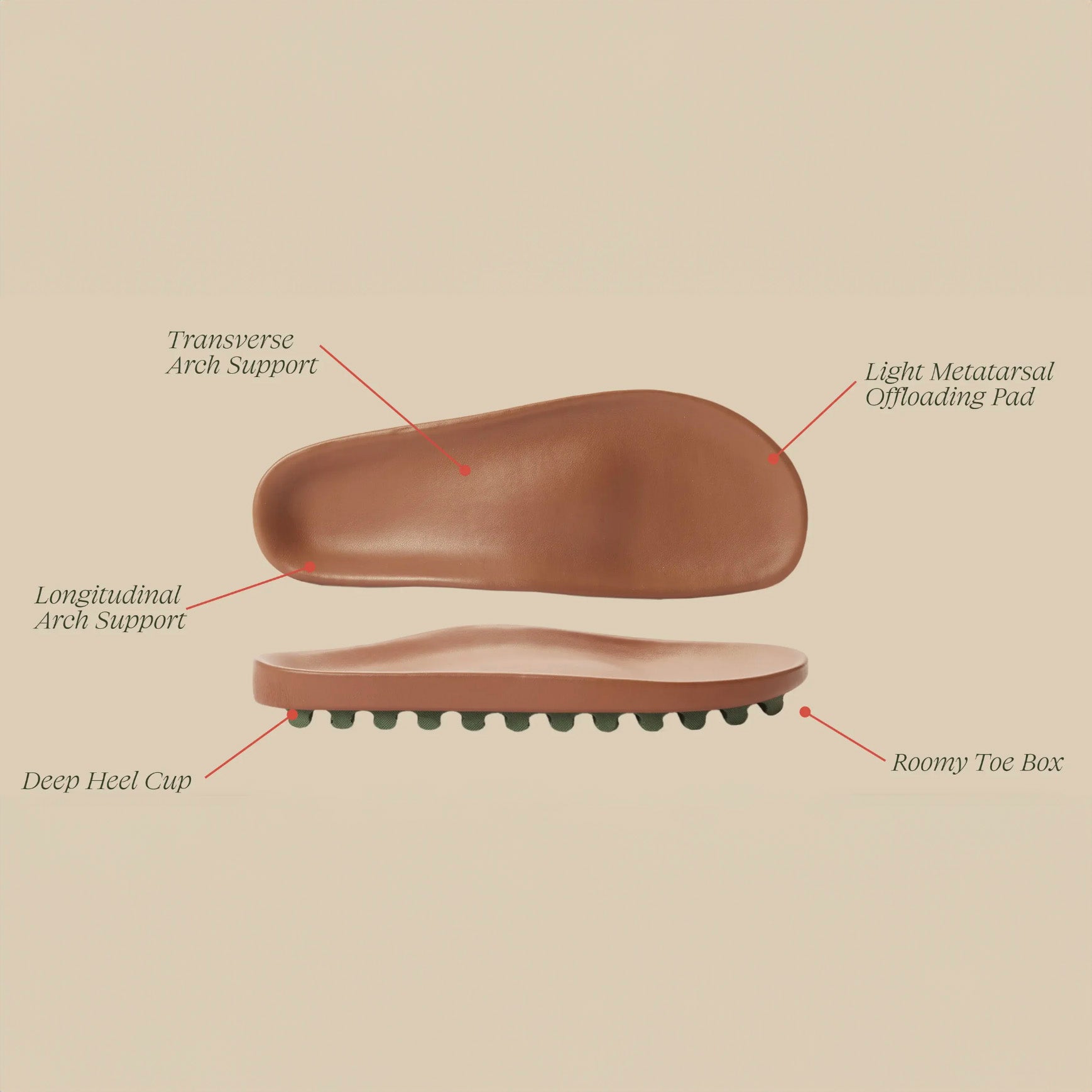 Engineered in collaboration with podiatrists, every Commbi footbed ensures optimal body alignment and wellness support. Enjoy the benefits of proper arch support and a deep heel cup that promotes full-body alignment and biomechanical health.